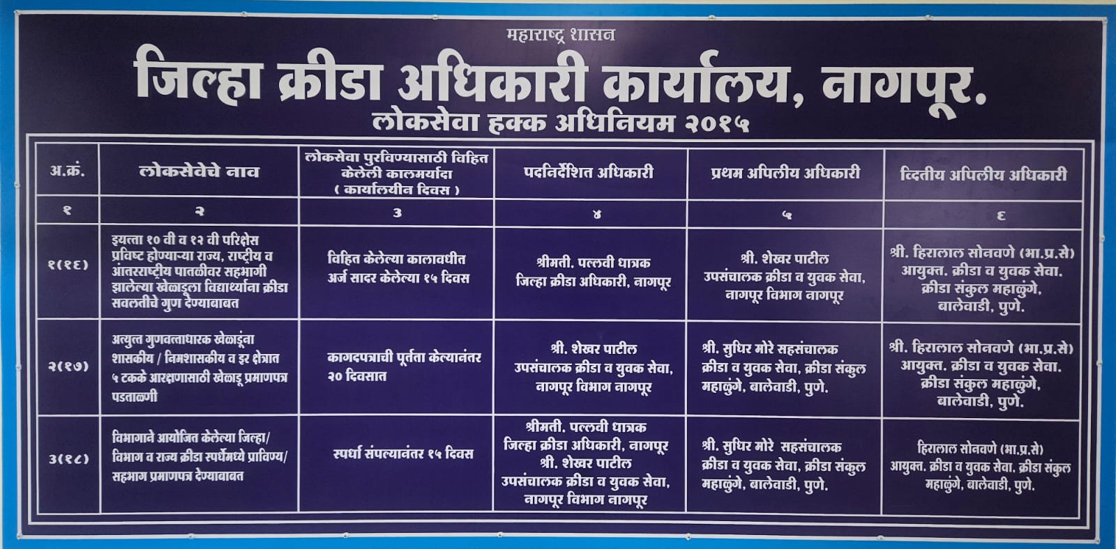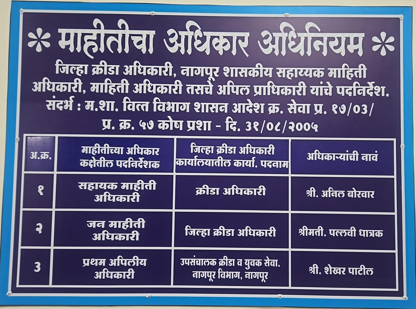 जिल्हा क्रीडा अधिकारी कार्यालय , नागपूर मार्फत सुरू करण्यात येत असलेल्या